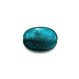 Silver foil Aqua flat Oval glass bead