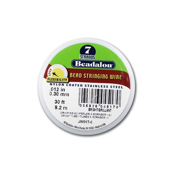 7 Strand Beadalon wire .012 DIA 30ft beading wire is a good general purpose beading wire in Bright , which is a dull silver colour.