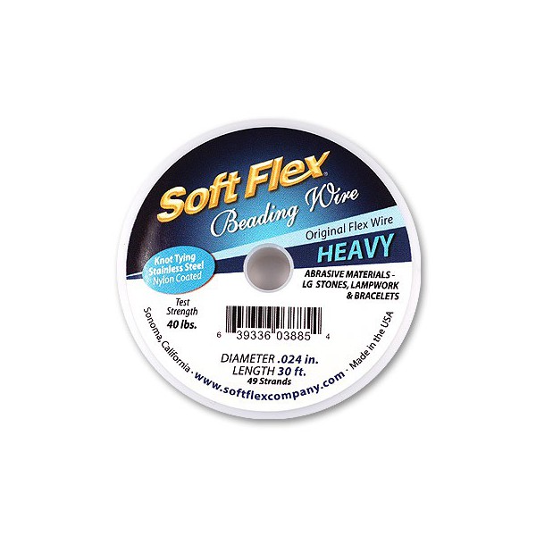 Soft Flex .024 DIA 30ft 49 Strand Heavy beading wire ideally suited for making bracelets from abrasive materials such as lampwork beads and stones.
