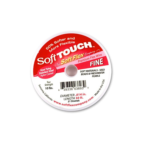Soft Flex .014 DIA 30ft 21 Strand Premium Fine bead stringing wire for jewellery making it’s ideally suited to threading soft materials such as seed beads and fresh water pearls. Its 50% softer and more flexible than Soft Flex.